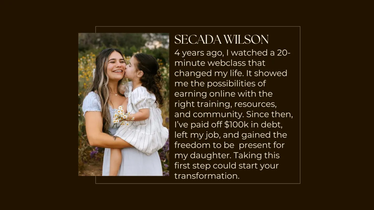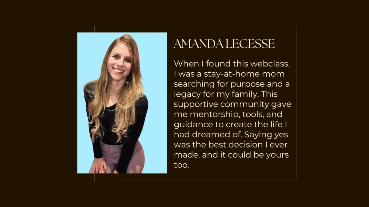 Register now for my free training, and I’ll show you exactly how to start building the online business that gives you financial freedom — no experience needed!